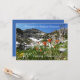 Le devant de cette invitation personnalisée tendance est notre photographie originale de belles montagnes, d'un lac gelé et de fleurs sauvages colorées ; le texte est blanc. Le verso est bleu, avec un texte d'invitation blanc. Une belle invitation à une fête de 75 ans de mariage. Le timbre-poste assorti est le produit Zazzle ID 172595978316996260. Photographie originale d'Alan Socolik. Tous droits réservés © 2015 Alan & Marcia Socolik.