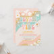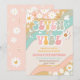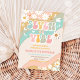 Célébrez la journée spéciale de votre enfant avec cette invitation d'anniversaire rétro branchée présentant des rayures ondulées colorées, des marguerites joyeuses, des signes de paix, des cœurs, des étoiles, des papillons et un soleil souriant. Parfaite pour une fête d'anniversaire de 7 ans, ce design vibrant capture l'esprit amusant des années 70 avec une touche moderne. Les invités adoreront l'ambiance ludique et les détails fantaisistes, ce qui la rend idéale pour les célébrations sur le thème rétro, hippie ou arc-en-ciel. Personnalisez facilement avec les détails de votre fête pour créer une invitation unique qui donne le ton pour la paix, l'amour et le plaisir.