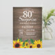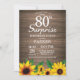 Invitation pour les 80 ans Surprise Tournesol Rustique. Fleurs florales et fond en bois rustique. Campagne Vintage Rétro. Anniversaire de femmes. 12 13 15 16 18 20 21 30 40 50 60 70 80 90 100 ans, tous âges. Numérique imprimable. Pour une personnalisation plus poussée, veuillez cliquer sur le bouton "Personnaliser" et utiliser notre outil de conception pour modifier ce modèle.