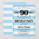 Invitation pour les 90 ans avec des rayures bleues et blanches en typographie. À 90 ans, santé ! Anniversaire adulte. Anniversaire homme ou femme. Enfant garçon ou fille, adolescent ou adolescente, invitation pour anniversaire. 13ème, 15ème, 16ème, 18ème, 20ème, 21ème, 30ème, 40ème, 50ème, 60ème, 70ème, 80ème, 90ème, 100ème. Tout âge. Pour une personnalisation plus poussée, veuillez cliquer sur le bouton "Personnaliser" et utiliser notre outil de conception pour modifier ce modèle.