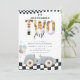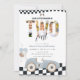 Invitation pour les 2 ans de la voiture de course vintage, Invitation pour le deuxième anniversaire de la voiture de course bleue avec photo "Deux fois plus vite"