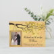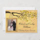 Célébrez un cinquantième anniversaire de mariage avec cette charmante invitation modèle photo. Ce design représente un arbre avec des feuilles dorées, des oiseaux d'amour et un cadre pour une photo du couple de célébrants suspendu aux branches. Le verso de l'invitation offre suffisamment d'espace pour les informations de célébration. Conception vectorielle originale de Night Owl's Menagerie, 2015.