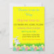 Une conception à double esprit Joyeuses Pâques invitation avec un fond jaune, un lapin, des pois brillants, des œufs de Pâques colorés et de l'herbe verte est l'invitation parfaite pour inviter vos proches à célébrer les vacances et profiter de votre temps ensemble.