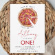 Invitez les invités à une fête d'anniversaire pizza remplie de plaisir pour le 1er anniversaire avec cette invitation colorée et personnalisable. Parfaite pour les garçons ou les filles, elle présente des graphiques de pizza ludiques et un texte modifiable pour que votre célébration soit extra spéciale.