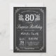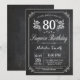 Invitation d'anniversaire surprise 80 ans avec fond tableau noir rustique et motif floral, noir et blanc. Anniversaire adulte. Anniversaire homme ou femme. Invitation d'anniversaire pour enfants garçon ou fille ado adolescente. 13 ans 15 ans 16 ans 18 ans 20 ans 21 ans 30 ans 40 ans 50 ans 60 ans 70 ans 80 ans 90 ans 100 ans. Tout âge. Pour une personnalisation plus poussée, veuillez cliquer sur le bouton "Personnaliser" et utiliser notre outil de conception pour modifier ce modèle.