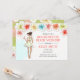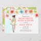 L'invitation pour un week-end de détente sur la plage pour l'enterrement de vie de jeune fille présente un thème tropical avec des fleurs d'hibiscus et une future mariée brune en train de savourer un cocktail. Disponible avec une fille aux cheveux blonds, bruns ou roux et avec une peau foncée ou claire.