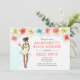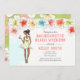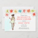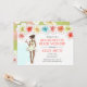 Invitation pour un week-end de détente sur la plage pour l'enterrement de vie de jeune fille avec un thème tropical avec des fleurs d'hibiscus et une mariée afro-américaine sur le point de se marier en train de profiter d'un cocktail. Disponible avec une fille aux cheveux blonds, bruns, roux et avec une peau foncée ou claire.