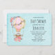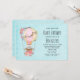 Invitation à une baby shower avec un design adorable représentant une illustration à l'aquarelle. Une montgolfière décorée de jolies fleurs rouges et roses. Un petit ours blanc mignon est assis dans le panier. Fond bleu clair de style vintage.