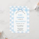 Célébrez l'arrivée prochaine de votre petit paquet de joie avec cette charmante Invitation pour une Baby Shower avec du Gingham Bleu, parfaite pour accueillir un adorable bébé garçon ou une célébration neutre. Cette Invitation rend la planification de votre journée spéciale sans effort et élégante, combinant un motif gingham classique avec un design moderne et épuré qui convient aux thèmes de baby shower estivaux, champêtres ou décontractés.