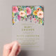 De magnifiques fleurs acryliques peintes à la main, arbustes, branches et feuilles forment une superbe bordure graphique supérieure drapée. Invitation CLEAR acrylique tendance, moderne et unique pour baby shower pour que vos invités puissent facilement conserver un joli souvenir indestructible de votre grand jour.