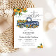 Célébrez avec style avec cette charmante invitation à une baby shower présentant un camion vintage bleu aquarelle débordant d'oranges et de verdure. La phrase ludique "Oh Boy! Un petit amour est en route" donne le ton à une joyeuse réunion. Parfait pour honorer les futurs parents, ce design allie l'élégance rustique des agrumes à la modernité. Personnalisez avec vos détails d'événement pour créer un souvenir mémorable que les invités adoreront.