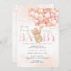 Personnalisez cette invitation de baby shower avec votre message et vos détails dès aujourd'hui ! Appuyez simplement sur le bouton 'Personnaliser' pour réorganiser et formater le style et l'emplacement du texte. Présentation du modèle d'invitation We Can Bearly Wait Baby Shower - invitation avec un ours en peluche et des ballons. Parfait pour une baby shower pour fille. Articles assortis disponibles en magasin ! (c) Beinghappyprints