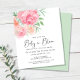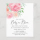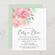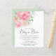 Cette jolie et élégante invitation de baby shower économique présente des fleurs aquarelles roses et corail et "Bébé en Fleur" écrit dans un script contemporain élégant.