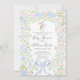 Invitation pour une baby shower grandmillennial à carreaux roses, Baby shower fille, Baby shower sudiste prépa, Baby shower de pralines, Invitation thème ruban bleu