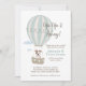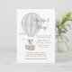 Célébrez une arrivée spéciale avec cette invitation pour une baby shower fantaisiste représentant une montgolfière sarcelle pâle et un chien mignon voyageant dans le panier. Le doux message “Envolée!” et les couleurs neutres en termes de sexe font qu'elle est parfaite pour les garçons ou pour toute célébration joyeuse de baby shower.