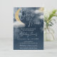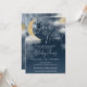 Invitation pour une baby shower or et bleu marine nous sommes over the moon avec des étoiles dorées et des nuages