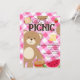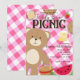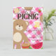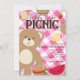Cartes d'invitation pour une fête d'anniversaire avec un pique-nique d'ourson en peluche rose.
