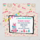 Une invitation de fête d'anniversaire "vraiment gentille" avec un ours à l'aquarelle mignon dans des couleurs rose et vert. Des cupcakes et des cadeaux d'anniversaire décorent cette invitation. Une bannière colorée est suspendue en travers du coin supérieur gauche. Le fond est un motif avec plus de bonbons et de friandises.