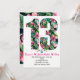 Cartes d'invitation pour une fête d'anniversaire de 13 ans sur le thème floral tropical. Personnalisez pour n'importe quel événement.