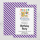 Cette “Invitation pour une fête d'anniversaire de 3 ans encadrée de rayures violettes et blanches” présente un cadre rayé violet et blanc avec un beau graphique. Préparez-vous à profiter d'une occasion mémorable, commandez dès aujourd'hui !
