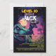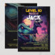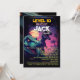 Célébrez le grand jour de votre enfant avec cette invitation pour l'anniversaire d'un garçon, un jeu d'arcade T Rex, qui combine un concept audacieux "passer au niveau supérieur" inspiré du jeu avec des visuels d'aventure de dinosaures passionnants.