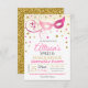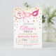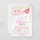 Fait un excellent thème pour une fête d'anniversaire pour ENFANT OU ADULTE (en particulier pour les étapes importantes comme un 16e, 40e, 50e, etc.) pour les soirées masquerade et glamour ! L'invitation présente des graphismes de masque et de confettis en faux foil et paillettes !