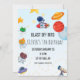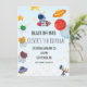 Préparez-vous à DÉCOLLER dans la joie avec cette adorable invitation d'anniversaire sur le thème de l'espace ! Avec des astronautes de dessins animés charmants - un chat, un chien et une grenouille - ainsi que des planètes colorées, des fusées et des étoiles, cette invitation est parfaite pour le jour spécial de votre petit astronaute.