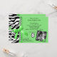 Un ruban vert citron et des perles argentées avec des rayures de zèbre noir et blanc ornent cette invitation contemporaine pour un anniversaire. Téléchargez votre propre photo dans le cadre funky de zèbre pour personnaliser davantage l'apparence. Il y a beaucoup de texte personnalisable sur cette invitation tendance pour ajouter vos informations de fête. Il y a un cadre de zèbre supplémentaire disponible pour le texte personnalisable ou vous pouvez supprimer cet élément si vous préférez ne pas l'utiliser. Nous avons également ce design dans différentes couleurs. Les couleurs coordonnées au dos de cette invitation pelucheuse complètent l'apparence et rendent ce design premium parfait pour presque toutes les occasions. Si à tout moment vous avez besoin d'aide pour personnaliser ce produit, n'hésitez pas à nous contacter et nous serons ravis de vous aider ! Veuillez noter qu'il n'y a pas de frais supplémentaires pour ce service personnalisé.
