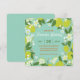 Définissez le ton de votre célébration spéciale avec cette invitation charmante représentant des citrons frais et des fleurs délicates dans des tons de menthe et de vert. Les détails botaniques dessinés à la main créent un cadre parfait pour vos détails d'événement personnalisés, apportant une touche d'élégance fraîche de jardin à votre correspondance de fête.