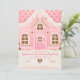 Cette invitation de maison en pain d'épices présente une maison en pain d'épices festive décorée de rose et de blanc. Coordonne avec la collection de fête de pain d'épices. Vous pouvez modifier pour inclure tous les détails amusants pour votre fête. Le dos a un motif de rayures diagonales rose et blanc.