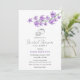 Cette invitation exquise pour une fête de mariage au thé, qui présente de délicates fleurs de lavande lily, est un moyen parfait de célébrer l'amour. Idéale pour une fête de jardin, une fête de mariage ou une célébration avec un thème "l'amour est en train de se préparer". Cette invitation personnalisable, conçue avec des fleurs délicates et une touche classique, donne le ton pour une occasion chic et inoubliable pleine de charme, d'élégance et de plaisir à l'heure du thé.