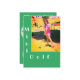 Image d'une fille jouant au mini-golf sur fond vert à l'avant et détails de la fête à l'arrière.