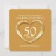 Invitation pour un 50e anniversaire de mariage. Belle invitation avec effet doré liquide dans un graphique imprimé en forme de cœur. Personnalisez avec vos propres détails de fête de noces d'or. Le 50e anniversaire est traditionnellement associé à l'or et le cœur symbolise l'amour. Graphiques et conception originaux de Sarah Trett.