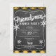 Invitez vos meilleures amies à votre fête de Noël/vacances avec cette invitation élégante. Le design présente un motif classique à carreaux buffalo jaune et noir en arrière-plan, des flocons de neige sur un tableau noir, et un espace pour les informations de votre fête. Se coordonne avec notre collection à carreaux Buffalo Jaune.