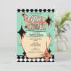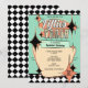 L'invitation pour une soirée sur le thème des années 50 comporte une typographie de style enseigne de milieu de siècle avec le texte « Fifties Party ». Cette conception comprend des éléments de vert menthe, d'orange, de noir et de blanc, un motif à carreaux, un fond à pois, des formes rétro, des étoiles et des motifs inspirés des années 50. Inclut un modèle pour une personnalisation personnelle.