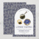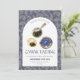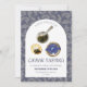 Cette invitation présente un portrait à l'aquarelle de caviar et une chips de pomme de terre avec de la crème fraîche.