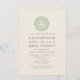 Une invitation pour une soirée spa avec une illustration d'une tranche de concombre en haut. Personnalisez le texte vert avec les détails de votre occasion.