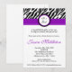 Ces invitations adorables de partie de baby shower d'impression de zèbre de bande de pourpre royal sont imprimées sur un papier lisse, vibrant, mat de poids de la couverture 110lb classé par 5x7. Contient le contenu réutilisé par 50%. Perfectionnez pour n'importe quel baby shower, nuptiale, bachelorette, mariage, ou invitation d'anniversaire.