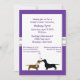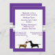 Invitation nuptiale mignonne de douche faite à un arrière-plan pourpre solide, avec un satin semblant le ruban blanc, à travers le milieu. Un secteur blanc des textes au-dessus du ruban est décoré, d'un brun et d'un teckel noir, avec des coeurs de lavande entre eux. Tout le texte est personnalisable pour adapter à vos besoins d'événement. Invitation adorable de wedding shower que la jeune mariée à être aimera.