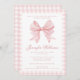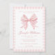 Adorable invitation à la douche pour bébé à thème "couche et lingettes" avec une charmante aquarelle rose illustrant l'arc rose mignon entouré d'un motif en vichy mignon. Idéal pour la douche bébé coquette et preppy.