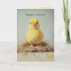Un poussin jaune moelleux à l'expression d'adorable grincheux se trouve dans un nid rustique. L'oeuvre de style les années 50 vintage allie réalisme et charme, créant une esthétique fantaisiste mais classique.