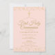 Elégante première invitation de communion sainte avec de la poussière d'or délicate, vous pouvez personnaliser avec vos informations spéciales en texte or chic sur un arrière - plan rose vif. Conçu par Thisisnotme©