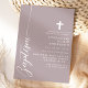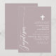 Célébrez l'occasion sacrée d'un baptême avec cette élégante invitation lavande poussiéreuse violette. Caractérisée par un design minimaliste avec un script moderne et une croix délicate, cette invitation est parfaite pour inviter les amis et la famille à se joindre à cet événement spécial. La couleur douce et les lignes simples et épurées ajoutent une touche de sophistication et de grâce, ce qui la rend idéale pour une célébration aussi significative. Personnalisez les détails pour créer une invitation unique et mémorable pour le baptême de votre enfant.