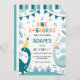 Invitation Premier 1er anniversaire Dinosaure vert foncé et c