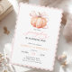 Cette invitation d'anniversaire élégante et charmante présente une belle aquarelle illustrant un citrouille mignon avec un ruban délicat, parfait pour la célébration du 1er anniversaire de votre petit