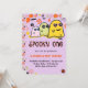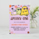 Invitation d'anniversaire des 1 an Halloween Spooky one Ghost Purple Groovy : Cette invitation d'anniversaire des 1 an pour Halloween en violet et orange avec ces mignons fantômes, chauves-souris, araignées, toiles d'araignée et fleurs groovy, typographie rétro, est pour les enfants (bébé fille). (ex: Spooky one. Rejoignez-nous pour le premier anniversaire épouvantable d'Alexandra le XXXXX octobre XX... ) Cette invitation d'anniversaire de premier Halloween est idéale pour un anniversaire effrayant / bébé groovy / anniversaire groovy / Halloween floral. Vous pouvez personnaliser ces invitations de fête d'anniversaire d'Halloween féminine avec toutes vos informations. Parfait pour les invitations d'anniversaire des 1 an d'Halloween, les invitations d'anniversaire de premier Halloween, la fête des 1 an, le premier anniversaire d'Halloween