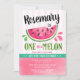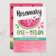 Célébrez le premier anniversaire de votre petit avec notre Invitation Anniversaire Rose un melon. La conception présente des fruits de pastèque à moitié mangés dans l'aquarelle avec le texte "un dans un melon".