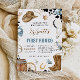 WILD WEST RODEO - Cette amusante South Western, Rodeo Cowprint, Genre Neutre / L'invitation d'anniversaire de garçon est entièrement modifiable, peut être imprimé et envoyé par la poste ou l'évènement d'anniversaire peut être partagé par e-mail et les médias sociaux! Cette Invitation à l'anniversaire de Cowboy présente une paire de Cowboy Boots & Cowboy Casquette, Lasso, Cactus, un bandana bleu et d'autres oeuvres d'art occidentales entourées d'empreintes noires. Il est également inclus dans un cowprint backside en option. Ce Rodéo Wild West, My First Rodeo 1st Birthday Invitation est sûr de compléter n'importe quelle fête d'anniversaire Western Theme, et est facilement modifiable pour les autres années d'anniversaire! En utilisant le logiciel Zazzle facile à utiliser (pas de téléchargement nécessaire) directement dans votre navigateur, vous achetez et personnalisez tout simplement au même endroit. C'est aussi facile que ça !
