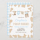 Premier Rodéo ! Western Cowboy thème 1er anniversaire avec plaid bleu bébé et impression de vache.