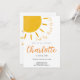 Célébrez le premier tour de soleil de votre enfant avec notre adorable invitation d'anniversaire ! Avec un thème céleste charmant et un motif de soleil, cette invitation personnalisable est parfaite pour marquer cette étape spéciale. Personnalisez-la avec les détails de votre fête pour créer une invitation inoubliable pour la famille et les amis.